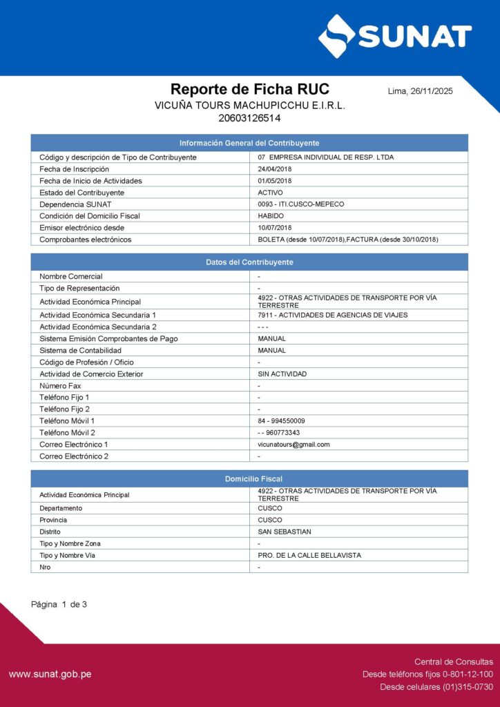 VICUÑA TOURS MACHUPICCHU